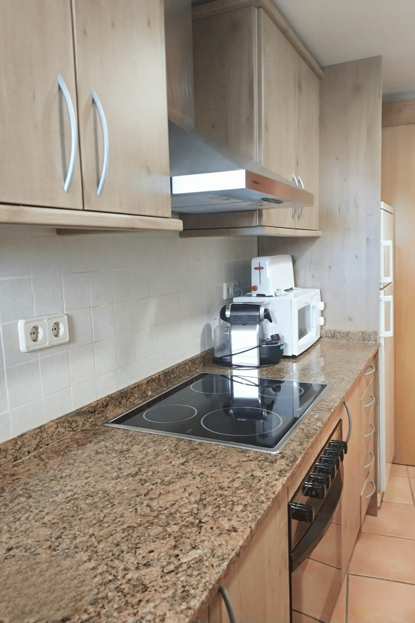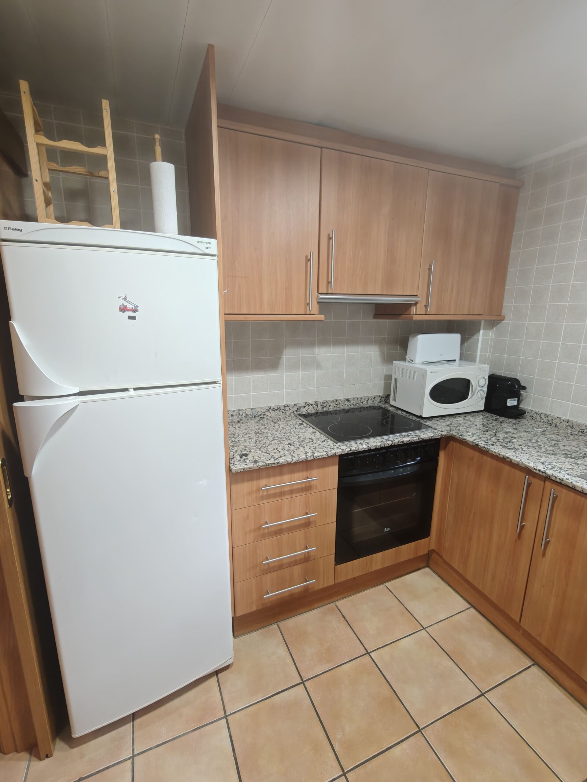 Sala d’estar i cuina equipada (forn, microones, nevera, cafetera Nespresso i convencional)
